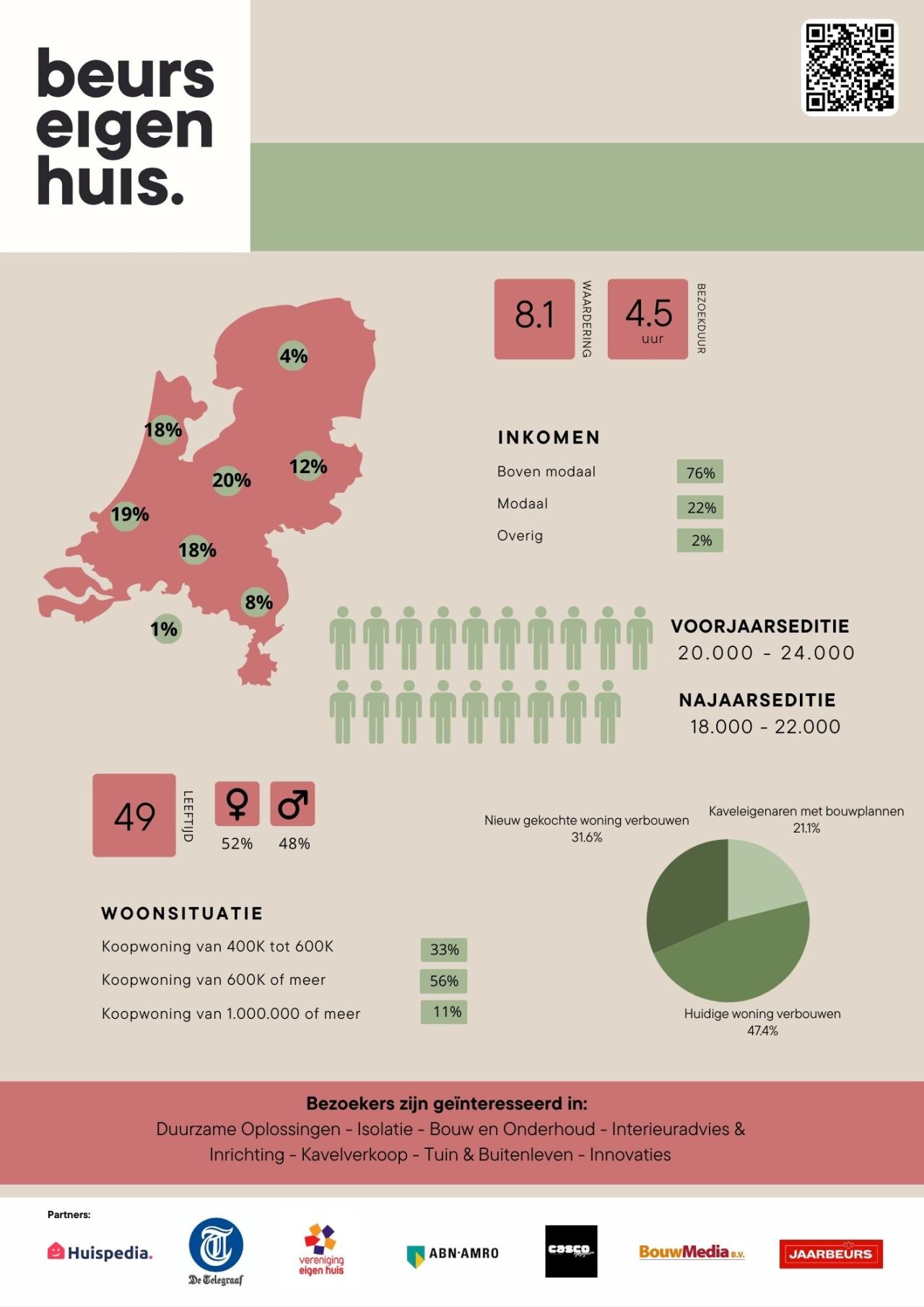 Tijdens Beurs Eigen Huis komen gemiddeld 20.000 gerichte bezoekers met concrete (ver)bouw- en woonplannen naar Jaarbeurs Utrecht. De bezoekers zijn op zoek naar advies en inspiratie en de expert die bij hen past om hun droomhuis te realiseren.